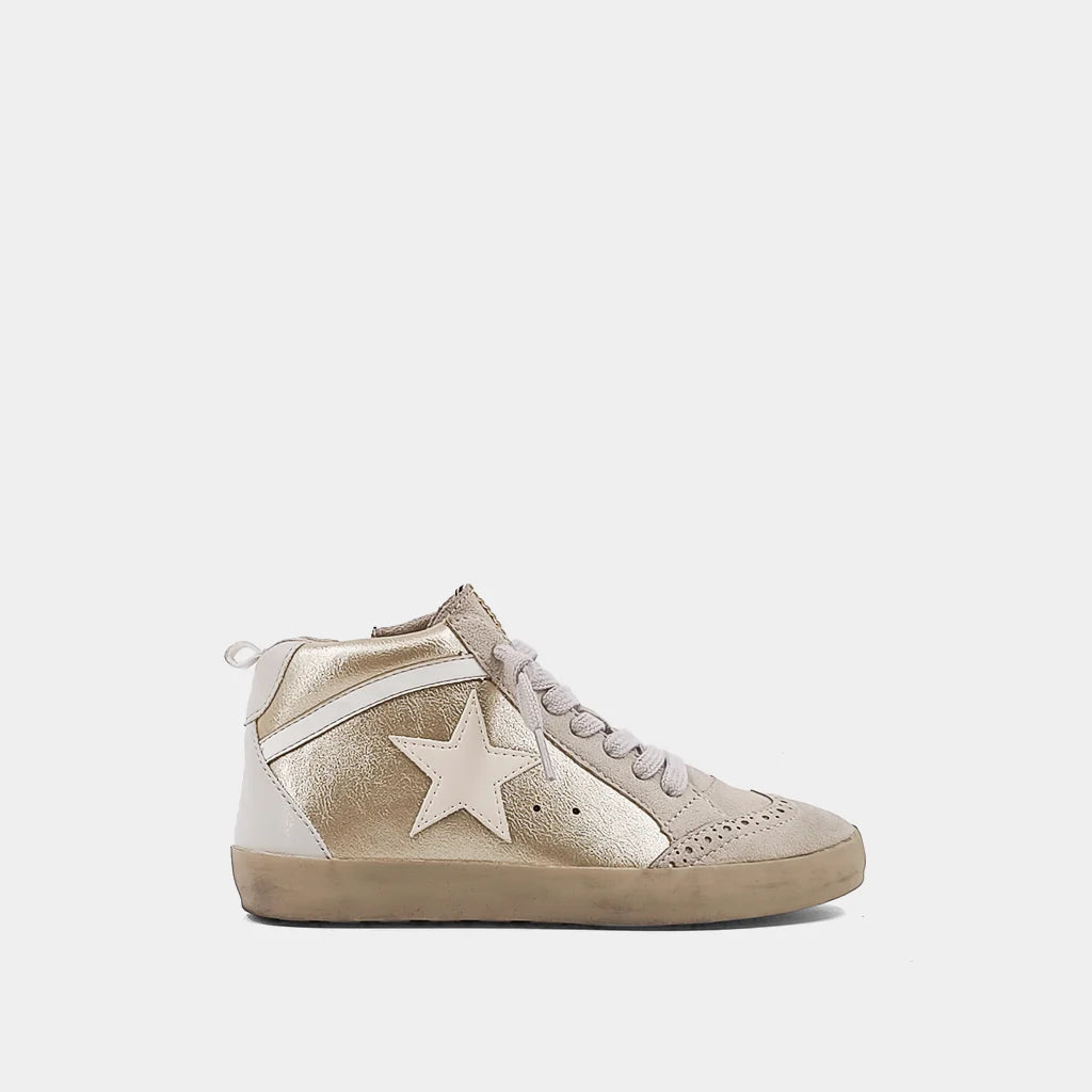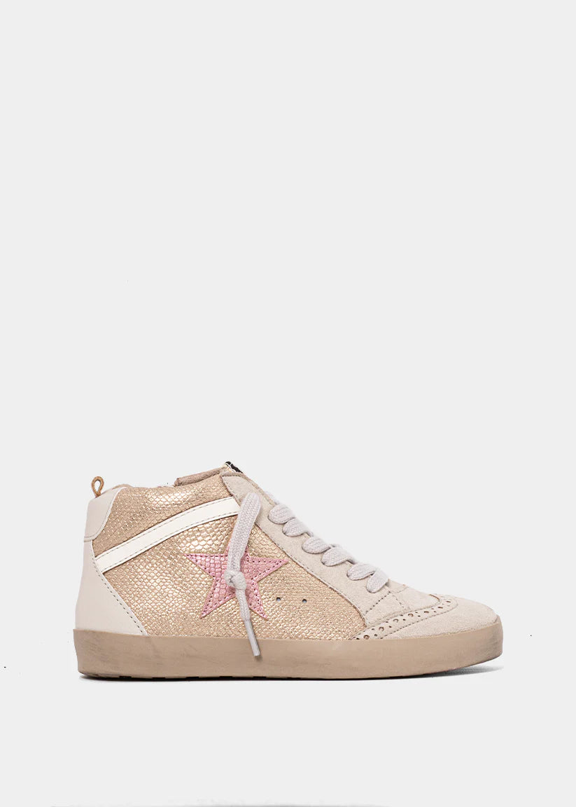 Inspired by vintage basketball kicks, PAULINA delivers a cool update on retro hi-top sneakers, with its colors and textures combinations. Match yours with your favorite jersey dress for an of-the-moment finish.