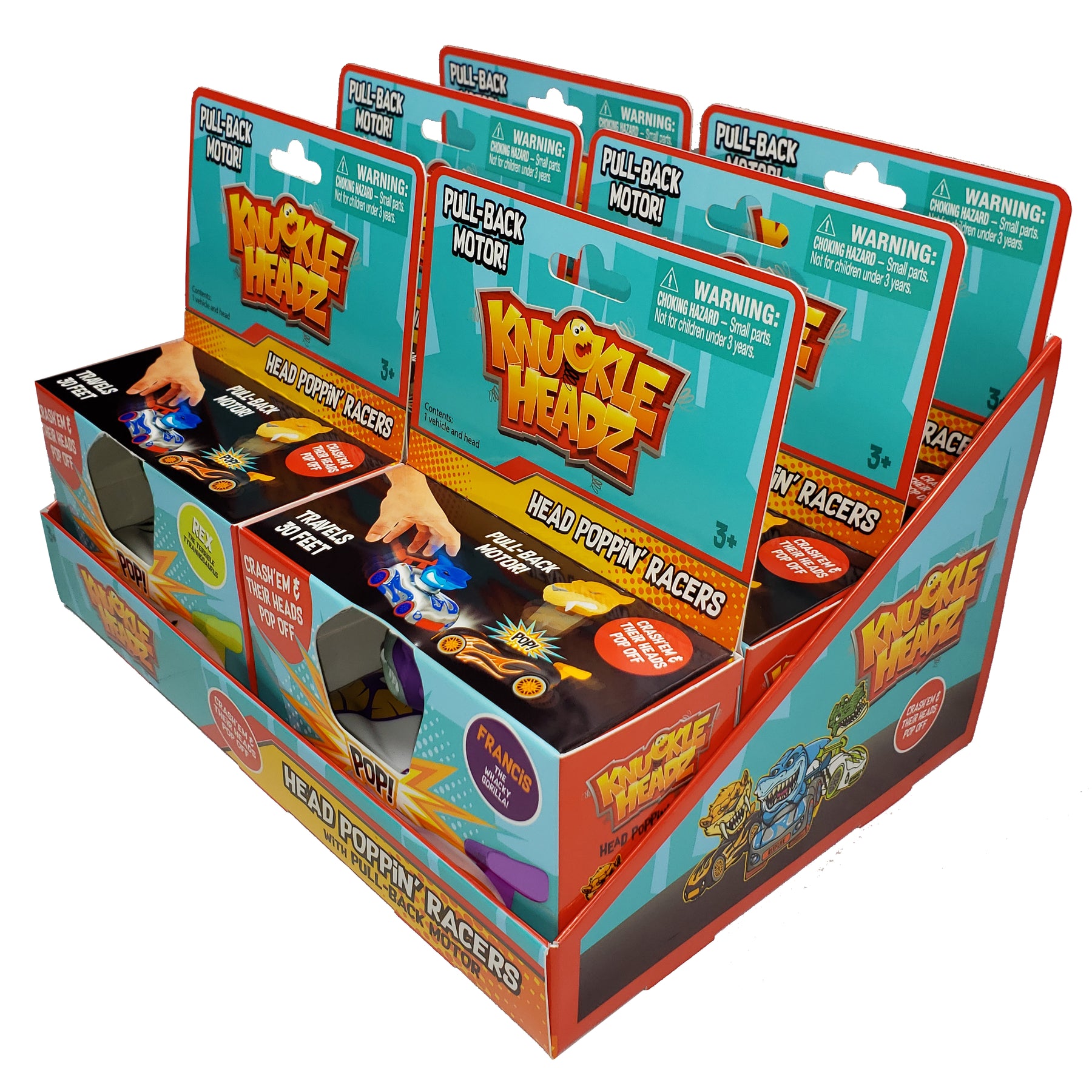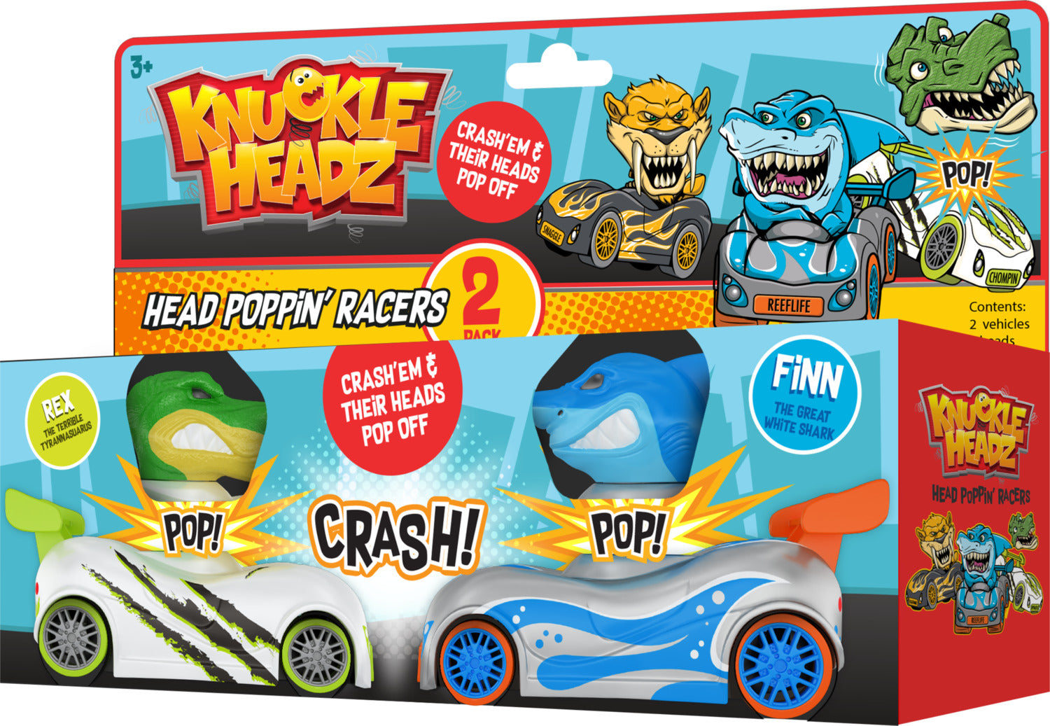 4 different characters available, including: Finn the Shark, Rex the dinosaur, snarl the Wolf, fang the Saber tooth Tiger. Each vehicle Includes a high-powered pull-back motor which zooms more than 30 feet. Made of durable plastic and other high-quality materials for endless head Poppin’ fun. The perfect Toy to engage kids 3-years and up, in immersive fun that promotes object, creative, and social play patterns. Available in single and twin pack sets.