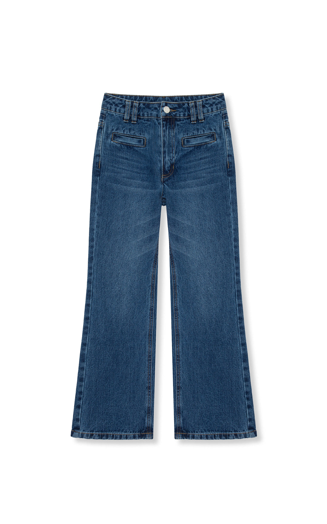Welt Pocket Mid Rise Wide Leg Jean